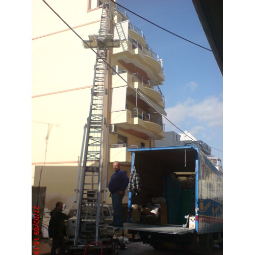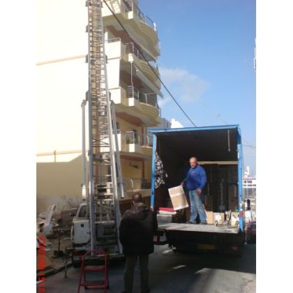 Στην εταιρία Ερμής χρησιμοποιούμε σύγχρονα ανυψωτικά μηχανήματα και διαθέτουμε εξειδικευμένο προσωπικό που διασφαλίζει ότι θα γίνει η κάθοδος και την άνοδος της οικοσκευής σας με απόλυτη ασφάλεια χωρίς καμία φθορά, αποκλείοντας έτσι την χρήση κοινοχρήστων χώρων, εξασφαλίζοντας την μέγιστη δυνατή ευκολία στην μετακίνηση των επίπλων σας. Η εταιρία μας θέλοντας να καλύψει τις τόσο διαφορετικές και εξατομικευμένες ανάγκες της κάθε μεταφοράς έχει στην κατοχή της ανυψωτικό μηχανήμα διαιρούμενου τύπου, που μπορεί να χρησιμοποιηθεί σε διαμερίσματα των οποίων τα μπαλκόνια βρίσκονται στην πίσω πλευρά του κτιρίου, εφόσον υπάρχει η δυνατότητα πρόσβασης από το έδαφος. Το κύριο κομμάτι της μετακόμισή σας και μεταφοράς της οικοσκευή σας, θα γίνει με τα κλειστού τύπου φορτηγά της εταιρείας μας, τα οποία είναι ειδικά προστατευμένα στο εσωτερικό τους, για να μεταφέρουν αποκλειστικά και μόνο έπιπλα.